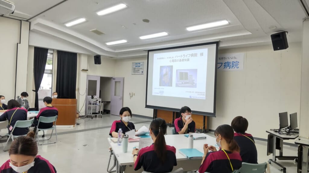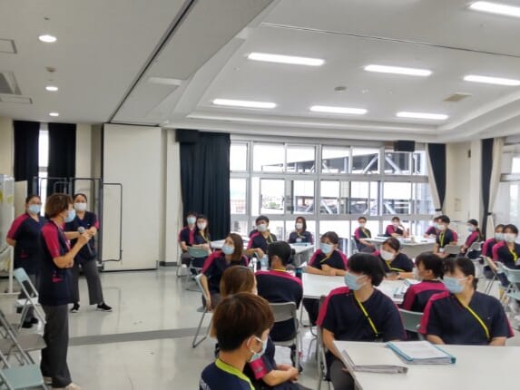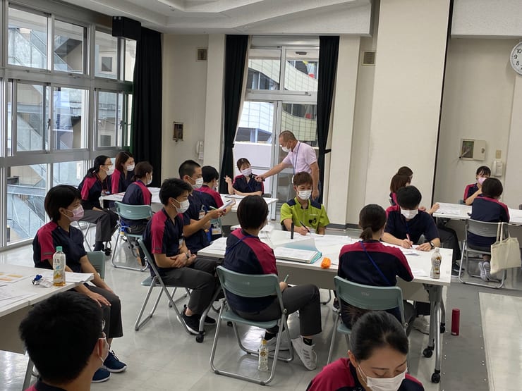 業務に慣れ始めた時期に開催する振り返り研修です。現場での経験や悩みを共有し、今後の課題や目標を整理します。急変時対応や安全管理に関する内容も取り入れ、次のステップに進むための準備を行います。同期との再会で、心のリフレッシュにもつながる研修です。