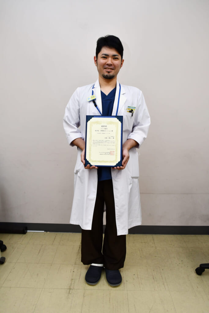 ありがとうございます。令和2年8月に「治療に難渋した腹壁瘢痕ヘルニアの一例」という演題で、「医学生・研修医セッション賞」を受賞しました。術後の傷が治りにくく、さまざまなことを試さないといけない大変な症例があったんです。