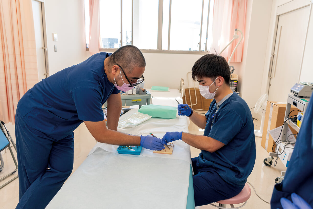 研修医の先生には、ほとんど一緒に回って、何かできる処置があればやってもらってますね。